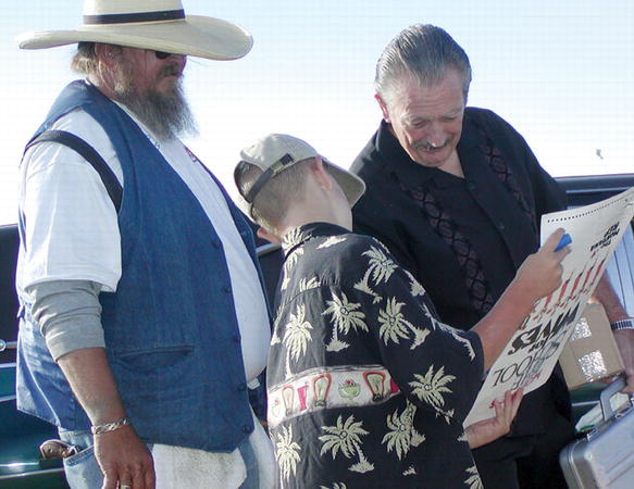 Blues Legend Charlie Musselwhite is prompted to sign autographs upon his arrival to the 2nd Annual Wind River Blues Festival. Musselwhite, the headliner for Saturday evening, is escorted by long-time friend and blues fan Bubba Larsen, who drove him to the event. |