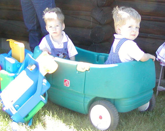 Cole and Ethan Shortridge have it made-in-the-shade waiting for the feast. Their parents, Sue and Daniel, and sister, Danielle, joined them. |
