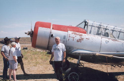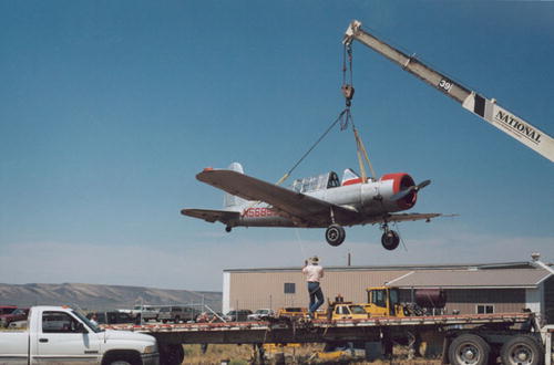 Gary Rees will haul anything: This nearly 29-feet-long mammoth, with a 42-foot wide wingspan, was hauled intact about 75 miles early Sunday morning, as seen here entering Big Piney. The BT-13 was hauled from Myles McGinnis' Fontenelle Creek ranch and transported on highways and byways to the Pinedale airport.