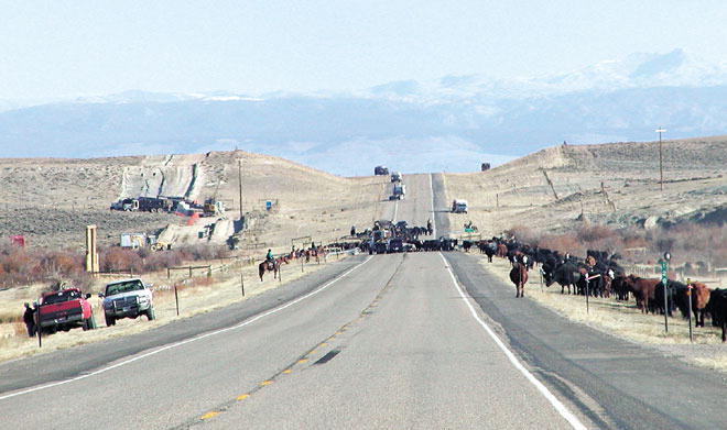 by Carie Whitman Approximately 1,200 head of cows woke up the pipeline crews working in the Cottonwood Creek area early Monday morning. Several Big Piney residents were on hand to help Barney Land and Livestock move their cattle home for the winter. Photo credits: Carie Whitman See The Archives for past articles. Copyright © 2002 Sublette Examiner All rights reserved. Reproduction by any means must have permission of the Publisher. Sublette Examiner, PO Box 1539, Pinedale, WY 82941 Phone 307-367-3203 examiner@wyoming.com |