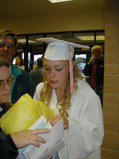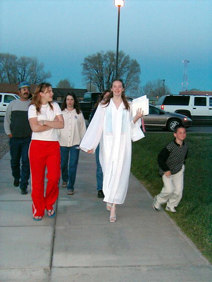 Click for larger view Jennifer Pierce is all business as she heads to her car with her diploma following her final act at BPHS. |