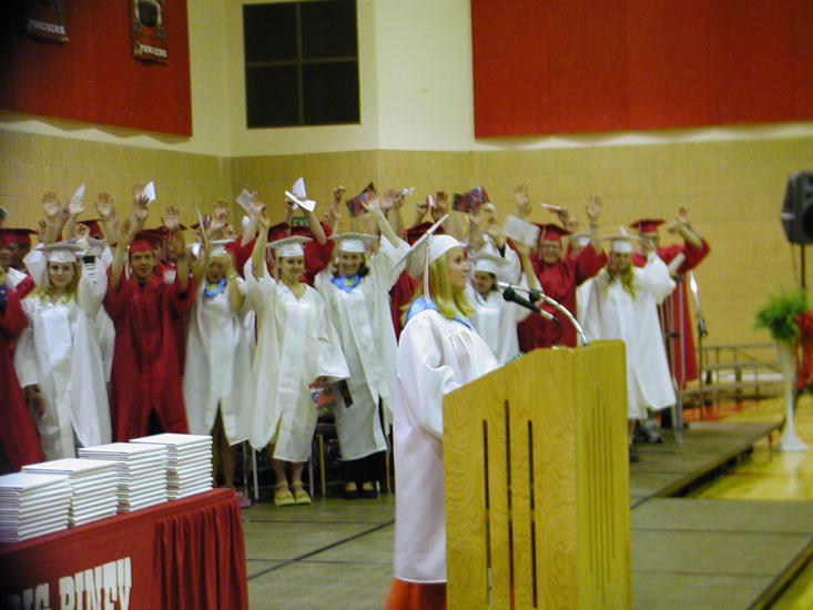 The Pinedale High School Class of 2002 moved their tassles as they were presented to the audience after the ceremony. |