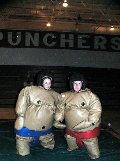 Click for larger view Lady sumo wrestlers joined the fracas at Big Piney High School's non-alcoholic senior party last Wednesday night. |