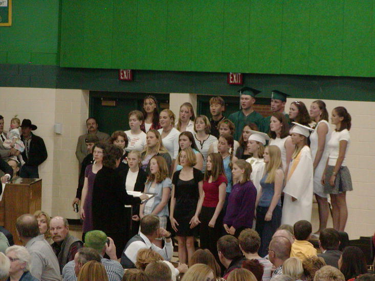 Click for larger view The Pinedale High School choir perform "Old Irish Blessing" mid-way through Pinedale's graduation. Bruce Corson of California was the featured speaker at the event. |