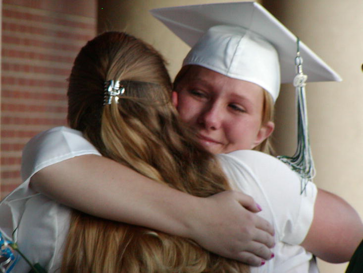 Click for larger view Desiray Bloxham gets an emotional congratulatory hug from underclassman Linsey Golden following the PHS graduation ceremonies Friday. |