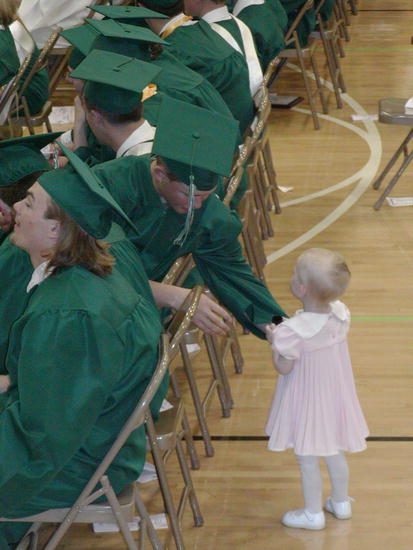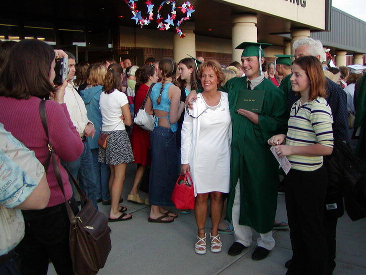 Click for larger view Matthew Kozeal is enthusiastic about the well wishes he gets from his aunt and others following Big Piney High School's graduation ceremonies. |
