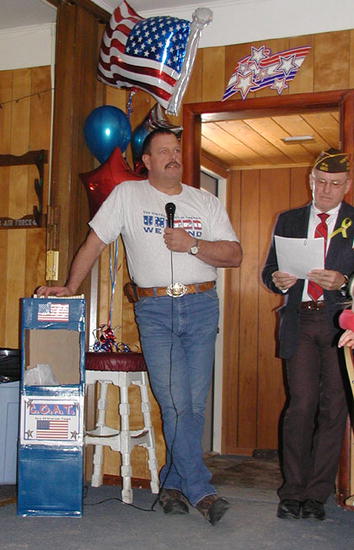 Jenny Clark, whose son Trevor Daniel is serving in Iraq, gives a glimpse into Trevor's life with a poster she created with photos of her young Marine. | VFW Post 4801 Commander and Sublette County Sheriff Hank Ruland told the story of many Vietnam veterans, such as himself, returning to the United States and being cautioned not to wear their military uniforms in public because of the anti-war sentiment. Rather than being greeted as heroes on their return from an international conflict, the soldiers were shamefully, and hatefully, called baby-killers and assaulted with ketchup, said to represent blood.