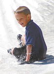 by Delsa Allen Tanner Butner slides down the water slide at the Pinedale Elementary School's annual Track and Field Day last Tuesday. Events included water balloon tossing, sponge relays, sack races, a duck in the ditch game, frisbee golf, pink ball, squirt gun wars and an obstacle course. The warm day was perfect for all the cool-water events. If the kids got too cold, they would just lay on the track to warm up. Teachers helped out with each event, as well as a high school student and parents who came for the day's fun. For more on the fun, see this week's paper. Photo credits: Delsa Allen See The Archives for past articles. Copyright © 2002 Sublette Examiner All rights reserved. Reproduction by any means must have permission of the Publisher. Sublette Examiner, PO Box 1539, Pinedale, WY 82941 Phone 307-367-3203 examiner@wyoming.com |