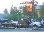 by Deanne Swain Bonnie and Clyde wait patiently for John Wayne Gillette outside of Bottoms Up Brewery last Wednesday night. John uses his mules for hunting, pack trips and pulling a chuckwagon. The team just returned from a wagon drive in Montanta. Bonnie and Clyde are very gentle and used to people. See The Archives for past articles. Copyright © 2002, 2003 Sublette Examiner All rights reserved. Reproduction by any means must have permission of the Publisher. Sublette Examiner, PO Box 1539, Pinedale, WY 82941 Phone 307-367-3203 examiner@wyoming.com |