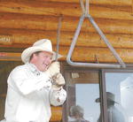 by Delsa Allen Ross McCracken rings the dinner bell at Elk Ridge Loge north of Cora Thursday evening where a steak cookout and an evening of cowboy poetry and music was had. Andy Nelson provided the cowboy whims and Kerry Grombacher sang of modern day life in the West. For more see this week's paper. Photo credits: Delsa Allen See The Archives for past articles. Copyright © 2002, 2003 Sublette Examiner All rights reserved. Reproduction by any means must have permission of the Publisher. Sublette Examiner, PO Box 1539, Pinedale, WY 82941 Phone 307-367-3203 examiner@wyoming.com |