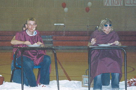 In the Big Piney High School senior class fun last Friday during the homecoming pep rally, Mitchell Clark and Jacklyn Rose kept the crowd laughing. Photo credits: Michele McCann Photo See The Archives for past articles. Copyright © 2002, 2003 Sublette Examiner All rights reserved. Reproduction by any means must have permission of the Publisher. Sublette Examiner, PO Box 1539, Pinedale, WY 82941 Phone 307-367-3203 examiner@wyoming.com |
