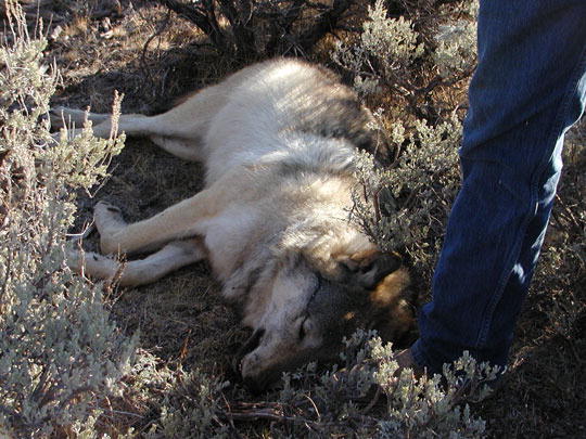 by Cat Urbigkit The U.S. Fish and Wildlife Service reported Wednesday that wolves were confirmed to have killed a cow and calf in the Upper Green River region last week, so the agency authorized USDA Wildlife Services specialists to kill the three-year old male wolf that has been running with the Green River female wolf and her pups. Wildlife Services succeeded in the mission Friday, meaning that this is the second male wolf associated with the Green River female that has had to be destroyed because of livestock depredations. It apparently won't be the last either. Mike Jimenez of FWS said Wednesday, "Yesterday I looked at a calf kill and a sheep kill in the same area," and confirmed that wolves were responsible for these kills as well. Jimenez said the he flew the area and saw the Green River accompanied by yet another uncollared adult wolf, so he authorized FWS to kill that wolf as well. Jimenez said killing the wolves are aimed at stopping the problem. Photo credits: Cat Urbigkit See The Archives for past articles. Copyright © 2002, 2003 Sublette Examiner All rights reserved. Reproduction by any means must have permission of the Publisher. Sublette Examiner, PO Box 1539, Pinedale, WY 82941 Phone 307-367-3203 examiner@wyoming.com |