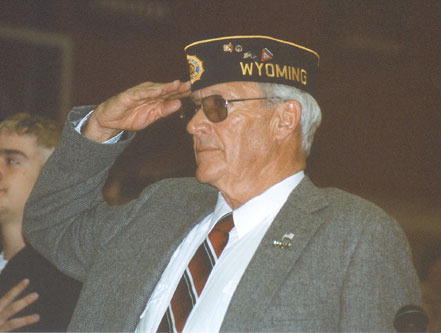 by Cat Urbigkit American Legion Dee Fox Post 78 Commander Ike Cowden salutes the United States Flag as Charlie Chase plays Taps during the Veteran's Day ceremony at the Big Piney High School Tuesday. Photo credits: Cat Urbigkit See The Archives for past articles. Copyright © 2002, 2003 Sublette Examiner All rights reserved. Reproduction by any means must have permission of the Publisher. Sublette Examiner, PO Box 1539, Pinedale, WY 82941 Phone 307-367-3203 examiner@wyoming.com |