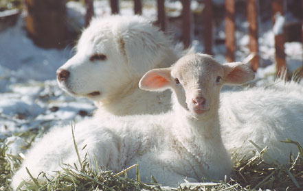 by Cat Urbigkit Paradise Sheep Company had a Christmas surprise with the arrival of a new lamb, shown here with what appears to be her personal guardian, albeit just a three-month-old pup. Although lambing isn't supposed to begin until May, four ewes provided for an eventful holiday. See The Archives for past articles. Copyright © 2002, 2003 Sublette Examiner All rights reserved. Reproduction by any means must have permission of the Publisher. Sublette Examiner, PO Box 1539, Pinedale, WY 82941 Phone 307-367-3203 examiner@wyoming.com |