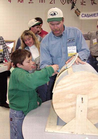 by Delsa Allen Scott Smith, co-chairman for the Rocky Mountain Elk Foundation's Sublette Chapter, gets assistance in drawing tickets for door prizes from the youngest person in attendance at the first annual banquet for Sublette County. The banquet netted over $45,000, to be put in a statewide fund for upcoming RMEF projects within Sublette County. Photo credits: Delsa Allen See The Archives for past articles. Copyright © 2002 Sublette Examiner All rights reserved. Reproduction by any means must have permission of the Publisher. Sublette Examiner, PO Box 1539, Pinedale, WY 82941 Phone 307-367-3203 examiner@wyoming.com |