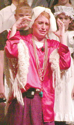 by Delsa Allen Miss Hannigan, played by May Rose Huntley, shows her disgust during the Pinedale Middle School choir's Annie Jr. performance last Thurdsay and Friday. The students have been working hard on the musical since March, and the hard work showed. Students not only had to memorize lines but had to practice musical parts as well. See The Archives for past articles. Copyright © 2002 Sublette Examiner All rights reserved. Reproduction by any means must have permission of the Publisher. Sublette Examiner, PO Box 1539, Pinedale, WY 82941 Phone 307-367-3203 examiner@wyoming.com |