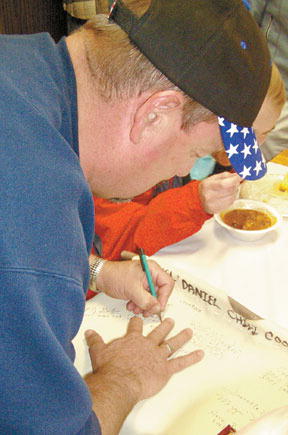 by Deanne Swain Once again Henry Schmidt won the Aniel Daniel Chili Cook-off with his red chili and took the all-around award. This year his son, Jamie, and daughter, Nicole, took him on in the red category and daughter-in-law, Jessica, entered the green chili category. The family placed well, with Jamie taking second in the red and Jessica second in the green. Henry graciously donated his check back to the community center. Photo credits: Deanne Swain See The Archives for past articles. Copyright © 2002, 2003, 2004 Sublette Examiner All rights reserved. Reproduction by any means must have permission of the Publisher. Sublette Examiner, PO Box 1539, Pinedale, WY 82941 Phone 307-367-3203 examiner@wyoming.com |
