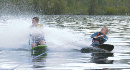by Delsa Allen Bo Morss takes advantage of the boat's horsepower to spray buddy Scott Jackson while knee boarding on Fremont Lake Saturday. The pair took turns showering each other with the frigid water while boating with family and friends. Photo credits: Delsa Allen See The Archives for past articles. Copyright © 2002, 2003, 2004 Sublette Examiner All rights reserved. Reproduction by any means must have permission of the Publisher. Sublette Examiner, PO Box 1539, Pinedale, WY 82941 Phone 307-367-3203 examiner@wyoming.com |