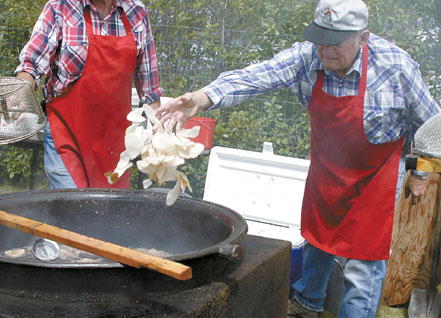 by Delsa Allen Ed Giebel throws a huge handful of sliced potatoes into the vat of hot oil during the Sublette Center's annual community picnic. For the first time, the feast featured Pitchfork Fondue - Darrell and Verna Walker volunteered to cook the meat and home-made chips for the event. Photo credits: Delsa Allen See The Archives for past articles. Copyright © 2002, 2003, 2004 Sublette Examiner All rights reserved. Reproduction by any means must have permission of the Publisher. Sublette Examiner, PO Box 1539, Pinedale, WY 82941 Phone 307-367-3203 examiner@wyoming.com |