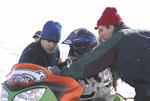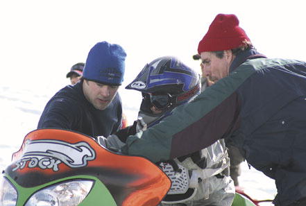 by Delsa Allen Bobby Millican and Gil Winters give Dyson Winters a few pointers prior to the junior division race in the Pinedale Snow Explorers snowmobile drags last weekend. Photo credits: Delsa Allen See The Archives for past articles. Copyright © 2002-2005 Sublette Examiner All rights reserved. Reproduction by any means must have permission of the Publisher. Sublette Examiner, PO Box 1539, Pinedale, WY 82941 Phone 307-367-3203 examiner@wyoming.com |