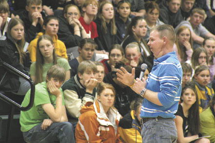Young oral cancer survivor tours Wyoming by Delsa Allen Gruen Von Behrens, a 27-year-old oral cancer survivor who has endured 30 disfiguring surgeries to save his life, has been touring Wyoming in recognition of Through with Chew Week, including a stop at the State Capital on Great American Spit Out Day. Like many teenagers, Von Behrens first tried spit tobacco at age 13 when he played baseball. Everyone who played baseball used tobacco and he felt pressured to use it, he says. Within a few years, he knew that he had a problem in his mouth but was afraid to tell his mom. Even with that fear, he could not quit chew. By age 17, he was diagnosed with squamous cell carcinoma. "Spit tobacco has ruined my life," Von Behrens says. "Every time I turn around, they're putting me in the hospital either to have surgery or some kind of treatment. If I had known then what I know now, I never would have put a dip in my mouth. Spit tobacco seemed harmless, but in reality it was more than I could handle." Von Behrens' treatment included one radical surgery that removed half his neck muscles and lymph nodes and half of his tongue. He immediately began a series of major surgeries to save his life that are ongoing today. Gruen describes himself before the cancer as a very handsome young man, athletic, and looking forward to life. Gruen's life is now a major challenge. Gruen's focus is prevention with youth. His presentation is meant to inspire youth to quit if they already chew tobacco or to remember Gruen's story if they are considering experimenting with tobacco. Gruen also talks about how addictive the product is and describes the power of tobacco industry advertising and promotions. He also has an inspirational aspect to the presentation. Gruen speaks to youth about qualities that are important, stressing that outer appearances don't matter when there are so many other more important characteristics. He encourages youth to treat everyone with respect and dignity. Photo credits: Delsa Allen See The Archives for past articles. Copyright © 2002-2005 Sublette Examiner All rights reserved. Reproduction by any means must have permission of the Publisher. Sublette Examiner, PO Box 1539, Pinedale, WY 82941 Phone 307-367-3203 examiner@wyoming.com |