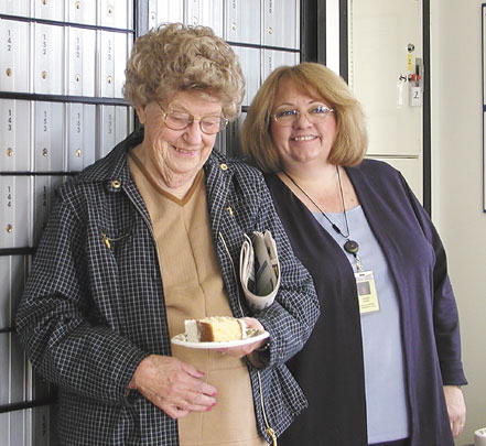 by Rhonda Swain Boulder Postmaster Debbie Despain visits with resident Thelma Steele during the Boulder Post Office’s 100th anniversary celebration Friday, March 11. Photo credits: Rhonda Swain See The Archives for past articles. Copyright © 2002-2005 Sublette Examiner All rights reserved. Reproduction by any means must have permission of the Publisher. Sublette Examiner, PO Box 1539, Pinedale, WY 82941 Phone 307-367-3203 examiner@wyoming.com |
