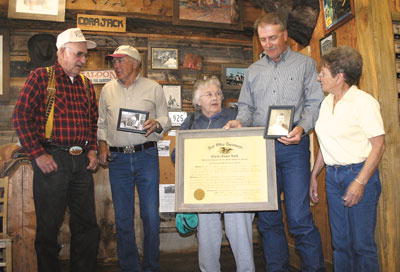 by Pam McCulloch On Friday, June 17, the Cora Post Office celebrated its 114th birthday. James Mark Noble presented the swearing-in documents of his great-grandfather and namesake, who was Cora's postmaster from 1900 to 1907. Photo credits: Pam McCulloch See The Archives for past articles. Copyright © 2002-2005 Sublette Examiner All rights reserved. Reproduction by any means must have permission of the Publisher. Sublette Examiner, PO Box 1539, Pinedale, WY 82941 Phone 307-367-3203 examiner@wyoming.com |