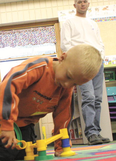by Pam McCulloch Shawn Dickerson spends a few last minutes watching his son, Preston, play before he leaves him for his first day of school in Pinedale. Photo credits: Pam McCulloch See The Archives for past articles. Copyright © 2002-2005 Sublette Examiner All rights reserved. Reproduction by any means must have permission of the Publisher. Sublette Examiner, PO Box 1539, Pinedale, WY 82941 Phone 307-367-3203 examiner@wyoming.com |
