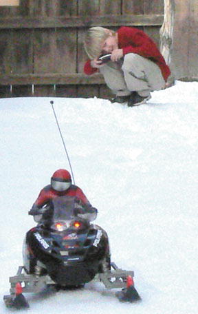 by Tim Ruland Logan Nixon of Pinedale takes to the snow Christmas Day, testing his newest present - a remote control snowmobile complete with rider and the ability to reverse. The toy handled well on snow and ice, but, unfortunately, failed on all jump attempts. Photo credits: Tim Ruland See The Archives for past articles. Copyright © 2002-2005 Sublette Examiner All rights reserved. Reproduction by any means must have permission of the Publisher. Sublette Examiner, PO Box 1539, Pinedale, WY 82941 Phone 307-367-3203 examiner@wyoming.com |