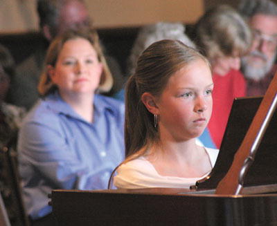 by Delsa Allen As mother, Ann, watches, Andi Noble concentrates on the march she's playing at the Sublette Center Sunday. Several children were featured in the spring recitlal for Coralee Petersen's music students. Photo credits: Delsa Allen See The Archives for past articles. Copyright © 2002-2005 Sublette Examiner All rights reserved. Reproduction by any means must have permission of the Publisher. Sublette Examiner, PO Box 1539, Pinedale, WY 82941 Phone 307-367-3203 examiner@wyoming.com |