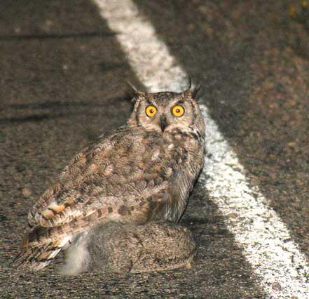 by Carie Whitman This owl stops traffic on Highway 350 Wednesday night as he protects his rabbit kill. Photo credits: Carie Whitman See The Archives for past articles. Copyright © 2002-2006 Sublette Examiner All rights reserved. Reproduction by any means must have permission of the Publisher. Sublette Examiner, PO Box 1539, Pinedale, WY 82941 Phone 307-367-3203 examiner@wyoming.com |