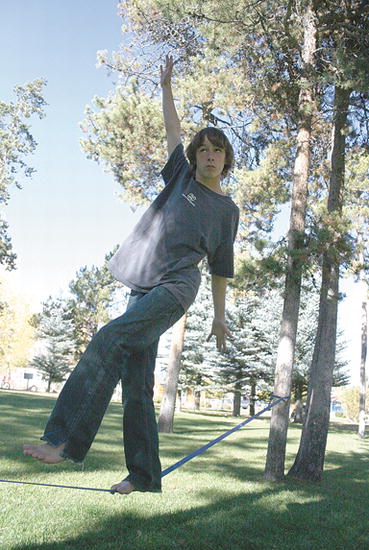 by Pam McCulloch Andrew Earl spends time in the Pinedale Town Park slacklining. Photo credits: Pam McCulloch See The Archives for past articles. Copyright © 2002-2006 Sublette Examiner All rights reserved. Reproduction by any means must have permission of the Publisher. Sublette Examiner, PO Box 1539, Pinedale, WY 82941 Phone 307-367-3203 examiner@wyoming.com |