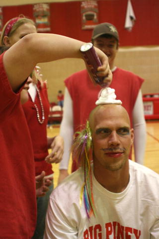 by Carie Whitman New teacher Nathan Strong was officially welcomed to Big Piney High School after being such a good sport during the Homecoming pep rally. Photo credits: Carie Whitman See The Archives for past articles. Copyright © 2002-2006 Sublette Examiner All rights reserved. Reproduction by any means must have permission of the Publisher. Sublette Examiner, PO Box 1539, Pinedale, WY 82941 Phone 307-367-3203 examiner@wyoming.com |