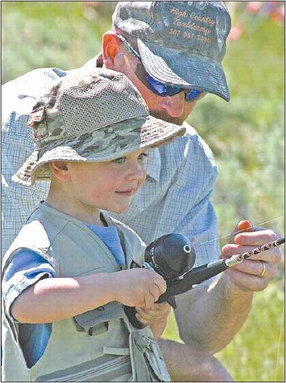 by Pam McCulloch Richard Bailey shows his son Connor the correct way to cast a fishing line at the Kids’ Fishing Day held June 2 at the CCC Ponds. Photo credits: Pam McCulloch See The Archives for past articles. Copyright © 2002-2006 Sublette Examiner All rights reserved. Reproduction by any means must have permission of the Publisher. Sublette Examiner, PO Box 1539, Pinedale, WY 82941 Phone 307-367-3203 examiner@wyoming.com |