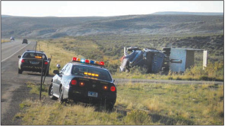 by Joy Ufford A mangled Looney Construction dump truck lies on its side Tuesday evening south of Daniel Junction on Highway 191 after rolling three-quarters of a roll, according to Wyoming Highway Patrol Trooper Josh Lengerich. Mike Looney of Daniel was driving the dump truck northbound and it rolled after he swerved to the right to get around a UPS truck that was stopped in the same lane to turn left into the Seven Miles River Ranch drive, the trooper said. Looney was transported to St. John’s Hospital in Jackson where he was listed in “fair” condition Wednesday, according to hospital spokeswoman Karen Connelly. Photo credits: Joy Ufford See The Archives for past articles. Copyright © 2002-2007 Sublette Examiner All rights reserved. Reproduction by any means must have permission of the Publisher. Sublette Examiner, PO Box 1539, Pinedale, WY 82941 Phone 307-367-3203 examiner@wyoming.com |