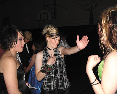 by Cheryl Long Tesa Lewis (left) and Megan Phillips have a good time dancing the night away at the Big Piney High School prom held April 13. The prom had a gothic dress code for the evening. Photo credits: Cheryl Long See The Archives for past articles. Copyright © 2002-2006 Sublette Examiner All rights reserved. Reproduction by any means must have permission of the Publisher. Sublette Examiner, PO Box 1539, Pinedale, WY 82941 Phone 307-367-3203 examiner@wyoming.com |