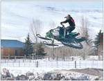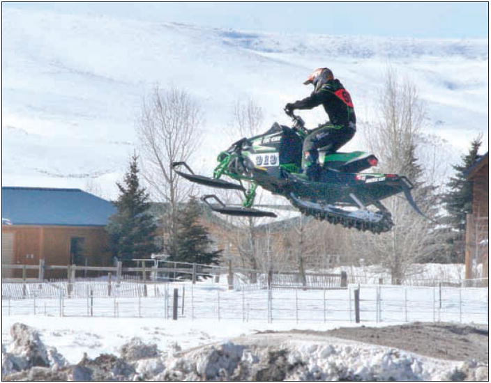 by Tiffany Turner Utah’s Jake Giles heads back down to the ground after a nice jump on the far side of the track in Cora last weekend. The Sage Brush Downs track hosted the annual SnoCross event with 100 racers over the weekend. See more photos on page 23. See The Archives for past articles. Copyright © 2002-2008 Sublette Examiner All rights reserved. Reproduction by any means must have permission of the Publisher. Sublette Examiner, PO Box 1539, Pinedale, WY 82941 Phone 307-367-3203 examiner@wyoming.com |