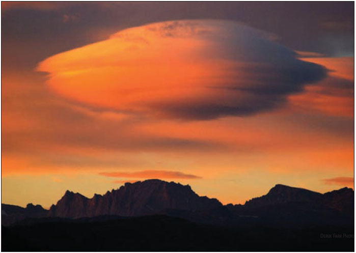 A lenticular cloud hangs over the Wind River Mountains last week. Dry, seasonable weather is forecast for the next seven days. See The Archives for past articles. Copyright © 2002-2008 Sublette Examiner All rights reserved. Reproduction by any means must have permission of the Publisher. Sublette Examiner, PO Box 1539, Pinedale, WY 82941 Phone 307-367-3203 examiner@wyoming.com |