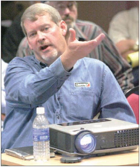 by Derek Farr Cimarex Riley Ridge, Madison Gas Development Project Manager Scott Stinson presents outlines of his company’s proposed project Monday at the Marbleton Town Hall. Stinson’s presentation was part of a Bureau of Land Management (BLM) open house designed to “see if there are any issues we have overlooked,” Pinedale Associate Field Manger Bill Lanning said. About 25 people were present to discuss the project that would build a new methane and helium recovery facility near Riley Ridge, west of Big Piney. The project will be built south of the Historic Lander Cutoff Trail, but according to Stinson, “You should not be able to see us, hear us or smell us” from the trail. When completed the project will provide natural gas and helium to Cimarex customers while it pumps 3 million tons of methane and carbon dioxide back into the Madison Formation for storage. See The Archives for past articles. Copyright © 2002-2008 Sublette Examiner All rights reserved. Reproduction by any means must have permission of the Publisher. Sublette Examiner, PO Box 1539, Pinedale, WY 82941 Phone 307-367-3203 examiner@wyoming.com |
