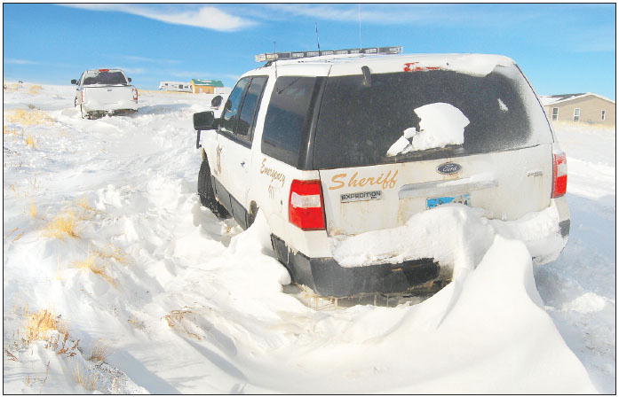 by Derek Farr A Sublette County Sheriff’s patrol vehicle, right, and a large four-wheel-drive pickup sit abandoned on Cheyenne Trail in Bargerville Friday. Heavy snowfall on Christmas day and a fierce windstorm Christmas night created impassable drifts throughout much of the subdivision. While many of the main roads were cleared by Friday afternoon, other residents were snowed in until Saturday. Photo credits: Derek Farr See The Archives for past articles. Copyright © 2002-2009 Sublette Examiner All rights reserved. Reproduction by any means must have permission of the Publisher. Sublette Examiner, PO Box 1539, Pinedale, WY 82941 Phone 307-367-3203 examiner@wyoming.com |
