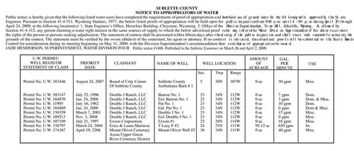 Public notice #1480. Published in the Sublette Examiner on March 26, 2009.