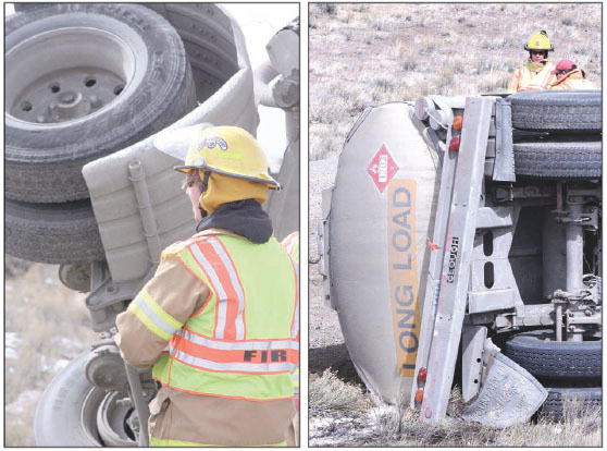 Sublette Examiner Volume 9, Number 2 - April 2, 2009 brought to you online by Pinedale Online by Derek Farr On Tuesday Sublette County emergency personnel responded to an overturned tanker trailer two miles east of Sand Draw on State Highway 351. The upturned trailer spilled a small amount of condensate on the roadside. Condensate is a petroleum liquid similar to diesel fuel. Authorities said the double-tanker-trailer truck lost control of its second trailer – the pup trailer-which slid off the road and overturned. The rest of the rig remained upright. There were no injuries. Emergency Services’ Robert Hansen said the driver was lucky: “Usually when we have one like this both the tractor and the trailer tip over.” Photo credits: Derek Farr See The Archives for past articles. Copyright © 2002-2009 Sublette Examiner All rights reserved. Reproduction by any means must have permission of the Publisher. Sublette Examiner, PO Box 1539, Pinedale, WY 82941 Phone 307-367-3203 examiner@wyoming.com |