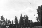Mural (15 images) - Pictures of a mural on sheets used as a backdrop for one of the early Green River Rendezvous. Contributed by Sublette County Historical Society and in possession of Museum of the Mountaim Man.