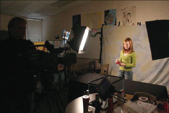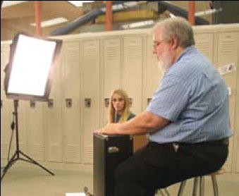 The Discovery Channel crew spent two days filming the girls in various backdrops presenting examples of science that can be found in everyday environments. In the Pinedale Middle School teacher’s lounge on Tuesday, Thompson and David took equal turns in front of the camera, displaying beakers holding colored water. “I’ll (choose) blue because it matches my shirt,” Thompson joked. According to Jacobs, over two million students enter local science fairs every year. From there, 60,000 make it to regional/state competition. The top ten percent of those then submit essays from which 400 become semi-finalists. The top forty go to nationals held in October. For more information on the Discovery Channel’s Young Scientist Challenge or to learn more about February debut of the show that will feature David and Thompson, go to: www.dcysc.com. Photo credits: Ben Cannon, Ben Cannon, Ben Cannon, Ben Cannon See The Archives for past articles. Copyright © 2006 Pinedale Roundup All rights reserved. Reproduction by any means must have permission of the Publisher. Pinedale Roundup, PO Box 100, Pinedale, WY 82941 Phone 307-367-2123 editor@pinedaleroundup.com |