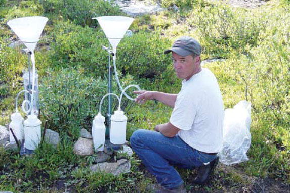 by Julia Stuble Raised around the lakes of Minnesota, Ted Porwoll can’t miss them too much, taking into account all the time he gets to spend on lakes here in Sublette County. Porwoll, who has worked for the U.S. Forest Service for 23 years, studies air quality by its impact on surface waters in the Bridger-Teton. Since 1996, he’s worked at the Pinedale Ranger District Office on air quality issues. During the summer, he is often in the field, so in the winter Porwoll has more time in the office and spent a few minutes speaking with the Pinedale Roundup about Sublette County’s air, mountains and change. What is your position with the Forest Service? I’m a “hydrologic technician” – basically, an air quality technician. The title isn’t really all that accurate – it deals with surface and groundwater and we do that in relation to air quality. What goes up, must come down. The Forest Service mandate is to protect the Bridger Wilderness and its Class I airshed. So, you do a lot of field work? Yes, in the winter we take one trip a month to Black Joe Lake, in the Big Sandy drainage, and to Hobbs Lake, above Elkhart, for snow samples. In the summer, it’s every other week for a rain sample. We take three trips a year for lake sampling at our five long-term lakes: Black Joe, Hobbs, Deep, Lower Saddle Bag and Ross Lakes. We run chemistry testing on the rain and snow samples, and collate that with the long-term monitoring on the lakes. We’ve been testing our longterm lakes and deposition since about 1984. The testing is a cause and effect thing, seeing what’s being deposited and what the effects are on the lakes and the creatures that live in them. What are you testing the water for? We’re looking at the amount of deposition from the atmosphere and the change in surface water chemistry over time. The program was originally put together to monitor potential acidification of lakes from acid rain. Turns out, what we’re finding is that we are more concerned about nitrification. By adding nitrogen to lakes you’re basically fertilizing these really sterile, high lakes, so their function changes. They’re receiving more nitrogen than they are able to use up. Is it difficult to pinpoint the causes of the nitrification? Well, to start, the Winds are a great place to monitor this sort of thing. Historically, it’s got a very clean background. If you take a drop of coffee and put it in a cup of coffee and compare that to a drop of coffee put in a cup of water, that’s the Winds. When you start with that clean background it’s easier to monitor cause and effect. Nitrification is a regional and even global thing. Since the passage of the Clean Air Act, the amount of sulfur dioxide has gone down nationally and the amount of nitrates has gone up. It’s regional but it also can be very local. Most sulfur dioxide comes from coal-fired power plants and smelters. Those are large point sources that are easier to clean up. NOx emissions are produced mostly by traffic, by gas and diesel engines, so that’s connected to all the urban growth in the West. The increase in NOx comes from the increased amount of traffic. They’re all mobile sources, so while they’ve cleaned up vehicles in general, there are more vehicles on the road and more miles traveled. Within that, we try to isolate the more local effects, one of which is energy development. Because of its proximity to the mountain range, the effects from local energy development will have a tight signature, which should be easy to see if we look at it on a larger scale. It’s a global problem but there’s no doubt that the amount of NOx, especially in the West, is increasing. How long have you been doing this? I’ve been here since 1996. I started with the Forest Service in 1983, on the Shoshone Forest. I’ve worked on different ranger districts as trail crew and as a wilderness ranger. This job is really nice, after dealing with people for 14 seasons, I wanted a job where I could go out and do sampling and monitoring, instead of looking for trouble all the time. I took this job because it’s a field-going job. For the most part, it’s one of the reasons I’m still here. What made you come to Sublette County? I came in 1996 because of the job. But when I moved out of Wyoming for the first time, I always knew I would be back. What’s your ideal day here? Oh man, probably get up, and take my wife and son out fishing at the lake for the day. One of the big appeals of moving here was the big, clean natural lakes, you don’t find that very many places in the West. Pinedale’s got pretty much everything you could want from a town. It’s all the civilization you need, and then there’s the wilderness and wildlife and mountains. What is the most interesting part of your job? I think the most interesting part is just getting to play in the water, the lakes’ monitoring. We do a lot of synoptic monitoring, which is just a quick, grab sample to give us a snapshot of water chemistry. In the Winds, that takes me to the lakes at the heads of minor watersheds. The best part of my job is that 90 percent of it is getting into the mountains and getting back out. About one to five percent is the actual sampling. When I first started the job, I thought it might get kind of old, going to the same places over and over again, but the reality is that those places change over time. It is neat to go back and see how things change year to year or over the seasons and see the differences, the characters a place takes on. It’s all about the traveling and the mountains. What is your favorite spot in the Winds? Oh, there are so many places in the Winds… The places I have to go on a regular basis are the Big Sandy Trail and Elkhart Park and those are busy chunks of trail, so any time I can get off the trail it’s nice. I like the northern end because it’s so gnarly. Even with all the people, I still love Big Sandy, because for eight months of th