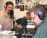 We have all the normal ones – fingers smashed, palm of the hand, inside of the legs. Andy: I had a nail go through my palm and two fingers. Jim: I was shoeing out at Rob’s place… the pony decided it was done and put its foot down with my hand. I had to take the hammer and beat on his leg. That was the last time I went shoeing with my wedding ring on, it went into the truck…then I swept the ring out when I was cleanin’. I heard a rumor you guys can shoe diagonal? [One person shoes a front foot while the other person simultaneously shoes the diagonal hind.] We did shoe diagonal. We were under a young horse, Andy was on a hind, when he says, “Brace yourself. I’m gonna try something.” It was amazing. I was amazed myself. It confused the horse enough that he stood still. (Laughing) We get ‘um done quick. Half the time; twice the price! Did you ever imagine you would be on the radio? No idea we would have been on the radio. No idea we would have anything like this until four years ago. We entertained the family, Boy Scouts and such, but it was the farthest thing from my mind. Who came up with your great name, Clear Out West, that forms such an apt acronym COW? Andy came up with COW. I was trying to figure out what to call this outfit. First one was Way Out West, but that was WOW and I thought ‘that won’t work’ so I kept thinkin’. Do you have any plans to try and take COW to satellite radio or elsewhere? Our plans are to take the radio show to the right person in satellite radio and a regional syndication area. Our day jobs really make it hard to market this. Why do you think your radio show has become so popular? It’s honest. Just honest. It’s genuine and something we really enjoy. Many people are also looking for a little bit of entertainment in this serious world. They’re looking to laugh, and reminisce. Sounds and smells are powerful at helping you reminisce. Has your radio show appealed to the audience you expected? We were surprised that lots of young folks like it. I was thinkin’ our show would appeal to people of our age, but lots of young folks, even teenagers listen. Our international audience strikes me. We are online and people can listen to our shows from our website. We get emails from people in Germany, Scotland, Japan, England… This guy just emailed us to tell us he always tunes into our show. He’s in a corner office in one of the largest skyscrapers in Washington, an insurance agent. One of the reasons we’re so popular is people just want to get away. A lot of people wanted to be cowboys but never got the chance. What’s your favorite part of the radio show? That’s like asking who’s your favorite child or who’s got the best cookin’! Not the popularity or prestige. My favorite thing is getting together with my brother once a week. We live 20 miles away and probably wouldn’t get togetherif it weren’t for this show. We really meet some great people we wouldn’t ever have otherwise met. Where do you get the ideas for your radio show and do you ever run out of material? We get a lot of things from family, friends and listeners. Jim- A friend I work with was talking about a veterinarian. (Pause) Andy- I don’t think we’ve done a veterinarian. Put it on the list. We keep our ears perked. There are so many show ideas. So much out there. So much to choose from. We never have any problem having something to talk about. Our show’s not scripted. Good thing it’s not. We would like to have a live calling show, but we’d need a 10 second delay for broadcast. That’d be a hoot! Yee doggie! Let me tell you. Could be a career maker or career ender. They could banish us with Howard Stern! How has the local area influenced your radio show? The local area brings cowboy culture to our front doorstep. If something funny happened on the ranch you’ll hear about it. There are lots of talented people here that people really don’t know about. Isn’t that the truth. The most gifted cowboy writers are very bashful, but will tell you stories on the front porch or on the street, but then they say they don’t want to hear it on the radio, but they really want to. Then there are a couple guys that won’t say a word when they know we’re listenin’. The old timers have got so much to give, they just need to buck up and let us do it! There are so many stories. We need to preserve what they have to say. I was thinking about Harve Stone today. We never got to him and now he’s gone. We really missed the boat. What does it take to put together your one-hour Saturday show? On Tuesday night, if we’re prepared, we’re done recording in two hours. But within every show we’ve got about 12 hours of work for a one-hour show: mixing, research, recording, etc. It’s just a two-man show, but we do interviews with other people. What are your best bloopers that you had to record over? Bodily functions! When you open your mouth to speak and a belch comes out. The day after Green Chili gets a little gamey in here. Jim- One of our most serious faux-pas was when I pulled a nose hair. Andy was talking and this nose hair was givin’ me hell. Andy- He pulled it and his eyes started waterin’ and they crossed. I started laughing so hard it probably took us 30 minutes. Jim- Yeah but I got it! Any grand plans for the future? Slow and steady wins the race. In a perfect world, this is what we would do for a living. Photo credits: Nikki Mann, Nikki Mann See The Archives for past articles. Copyright © 2007 Pinedale Roundup All rights reserved. Reproduction by any means must have permission of the Publisher. Pinedale Roundup, PO Box 100, Pinedale, WY 82941 Phone 307-367-2123 editor@pinedaleroundup.com |