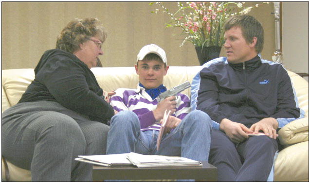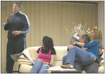 On any other night, Barb might have seen this towering 33-year-old and shrugged him off as just another gas field worker. Probably a nice enough guy, but still a permanent stranger, another member of the transient mob ever coming and going with barely a glance at the activities in the small town hosting the frenzy of an energy boom. But that night, as Barb craned her neck upward, she saw at long last, after fruitless hours of auditioning nervous and rigid locals, just the man she had been waiting for. She saw Ralph, the obsessive lover turned vigilante, the character scribbled in her director’s notes as: “a man with a purpose.” She held out a script, twisted and bent by hands belonging to men who were too short, too quiet, too something. “You here to read?” Barb asked. Ben took the crumpled pages and nodded once. “You bet.” Ben sighs when he remembers how his coworkers found out. His boss James, a gritty Texan cowboy, had approached Ben across the snowy gas field to ask him about filming a training video for their pipeline company. “Hey, Hollywood!” James called. “I got a task for ya!” Ben blinked at him in surprise. “You heard about that?” His boss frowned. “Huh? What are you talking about?” “Well, you heard about me being in the play, right?” Ben asked. James hadn’t. “Play? What are you talking about?” Ben spoke slowly. “I’m… actually in the town dinner theater play.” His boss stared. “OK…” he said. “Really?” This might be the common reaction from most who hear that Ben, a pipeline supervisor on the Jonah Field and seven-month Pinedale transplant, is dabbling in the first community theater performance the town has held in 10 years. But the former football player takes his part in the farce “Oh, Promise Me,” being performed in the United Church of Christ through Saturday, very seriously. During his breaks on the field, Ben jacks up the heat in his truck and stares at the dogeared playbook. He belts his lines and frowns, repeating “that. THAT. Tha-tuh,” biting the air with his teeth to “punctuate” his consonants, as Barb has repeatedly shouted at him during rehearsals. “The first week (after I got the part), I was just yelling in the car, screaming at myself,” Ben said. “I’m supposed to be a loud person, and I was always trying to put little twists on it. But it turns out the best way to say my lines is just loud and rude, which makes it real easy.” Although technically a small part, a bully who pops up occasionally in the second and third acts, Ralph is written to lead a one-man mutiny through the play’s central plot. Boiling with virile ferocity, he explodes on the stage, usurping the lead actors from the spotlight and ensnaring the attention of every eye in the audience. Or so Ralph should, if performed right. And Ben, the gas field worker who has rarely seen a play let alone ever acted in one, does it right. “When Ben first walked into the auditions, (the assistant director) Jen and I looked at each other and said, ‘this is Ralph,’” said Barb, the play’s director who has put on eight other Pinedale community theater performances. “The fact that he’s so big was perfect, and when we heard him read, we were just really impressed with what he could do.” It wasn’t just his size. Instead, Barb was enthralled by how Ben didn’t bother to catch his breath before jumping into a cold reading, by his blatant energy when he clutched the script and shouted out his lines. He had the look of a man with a purpose. And indeed Ben has a purpose, one that the play can help move forward. His goal stretches beyond Ralph’s desperation for romantic justice, as well as the only objects that some Pinedale natives assume gas workers have: to fatten their wallets and count the hours until they can drive back home. Not Ben. In fact he, and he’ll contend the same about many of his fellow gas field men, is simply chasing after his future. To him, Pinedale is his final chance to settle down, a place where he can make a permanent, stable life. Or at least more stable than his past attempts, which amounted to little more than heartfelt failures. First there were the NFL tryouts out of college, which only earned him a handshake with John Elway. The next five years of touring the country playing arena football ended abruptly with a bad hip, a Twinkie binge and an extra 50 pounds. After joining his wife in Florida, Ben’s career peaked with Sub prime lending, which he swears he didn’t know would doom so many clients to foreclosure. When Ben complained to his mother, still living in his hometown of Kemmerer, she offered a solution. A job that geology guaranteed would last 30 or 40 years, an impressive salary and a nice small-town environment to plant roots in. “I’m like, I’m going up there. I need to find some security and find a career,” Ben said. “And I scored.” Immediately after arriving in town last summer, Ben divided his days between work and hammering out a respectable social life. He volunteered to assist coaching the junior high football team. He resisted lounging away his weekends at the bar — too smoky — and instead played Halo with high school kids at a local church on Saturdays. He’s a regular at the local gym in the morning, when he does cardio, his body dwarfing the exercise bikes like doll furniture. He returns in the evenings to lift weights, bent on winning a bet with a friend at the gym on who can lose 10 percent of his body weight first. He’s still waiting for his wife to sell their house in Florida, but in the meantime has found a surrogate wife in his landlord Keith, an 85-year-old with goggle-sized glasses. Ben rents out the basement of the Cora ranch house, and most nights he ambles up the stairs and joins his landlord for sugar cookies and a marathon of black-and-white Westerns. “It’s great rent, great company,” Ben said. “Keith just needs to work on putting mor