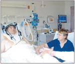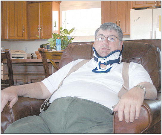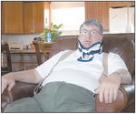 Sackrider replied, “No, can you get me out of here?” “Just lay still,” Scott said. “Don’t move. Just don’t move.” Sackrider was worried about whether the car was burning and if he had the luxury to stay put, but was glad for the calm in Scott’s voice. Eventually Sublette County’s emergency crews arrived to the scene and at about the same time Sackrider regained some feeling in his fingers and feet. They put him immediately in a neck brace and used the Jaws of Life to pull him out of the mangled vehicle. From there he was life-flighted to a Salt Lake City trauma center. “Fortunately I didn’t move anymore, or I could have killed myself,” Sackrider said. Eight weeks later and Sackrider was sitting upright, watching some television. He just had his halo brace removed from his head a little over a week ago. Getting rid of that halo has brought him much joy, the kind of joy that comes from being stuck in bed for almost two months with little to no mobility. “Once I got the halo off it really helped because now I can go out and get around,” Sackrider said. While bedridden, he and his family had been receiving a gracious amount of community support from Pinedale all the way to Salt Lake City, where he had to spend 12 days in the hospital. “If it hadn’t been for the brothers and sisters at our Kingdom Hall [Jehovah’s Witnesses in Salt Lake City when I was there] and people from the town here coming to see me, it would’ve been really bad,” Sackrider said. “I appreciate it. I want to make sure they all knew I appreciated everything they’ve done.” “There was a lot of support from the town,” wife Jeanie Sackrider added. “It just goes to show how a small town will band together to support one of its own.” With the support of those around him, including an incredibly supportive family, and a little good fortune, Sackrider just narrowly escaped dire consequences — he had, after all, broken his neck. “Where the break is, is where the breathing and everything is — like Christopher Reeves,” Sackrider said. “I suffered what he had, but fortunately I could breathe. “My doctor figured I should have been on a respirator or in a wheelchair — paralyzed from the neck down. Instead I’m walking and talking and breathing.” His fracture was fused in front in the hopes that his neck will eventually have more mobility. He will be in his current neck brace for at least another six weeks. “It just has to heal,” he added. “It’s doing pretty good, but when they showed the X-rays you could still see the line where the crack was.” Today, Sackrider will find out the fate of his arm, which doctors suspect might be a torn rotator cuff, but could not test until they removed the halo. “I have trauma in the arm yet,” he said. “I can lift a coffee cup and that’s about it. I’m getting better though.” He has physical therapy on the arm three times a week, and suspects there will be more once he is free of any neck brace. Nerve damage affecting his ears — making them extremely sensitive to touch — is likely permanent. The white Ford pickup owner has not come forward and did not stop at the scene. Sackrider and his wife hope that awareness of his particular incident will spur greater urgency for defensive and responsible driving in the area, especially on the highway. “He could’ve just nicked me with his bumper, and would have got me going,” Sackrider said. “The only thing I was really upset about is when he hit me, he didn’t stop.” Ironically, a highway-traveling vehicle also nudged one of Sackrider’s sons since moving to the area. The son was unharmed and able to track down the vehicle. The woman inside had left the scene because she was worried about a ticket and losing her job in the energy fields. The Sackriders understand the fear, but are only asking for each person to treat another like they wish to be treated. “When you’re wrong, you’re wrong,” Sackrider said. “You don’t leave somebody.” It is unclear, if ever, what condition Sackrider will be in once he is fully healed. He is a carpenter, and hopes to get back to work as soon as he can. If the driver responsible for the accident were to step forward, it would also help with insurance toward the accident, but with each passing day that scenario seems unlikely. With his health on the mend after such a brutal accident, in what could have left him for dead, Sackrider is enjoying the turn of weather and his ability to go out and enjoy it. He just hopes that he doesn’t have to hear about similar situations in the future, for anyone. “You’ve got to be defensive here,” he said. “You do something that hurts somebody and you’ve got to render them aid. “I know one thing: I’m getting better. It’s just a long haul.” Photo credits: Jonathan Van Dyke See The Archives for past articles. Copyright © 2008 Pinedale Roundup All rights reserved. Reproduction by any means must have permission of the Publisher. Pinedale Roundup, PO Box 100, Pinedale, WY 82941 Phone 307-367-2123 editor@pinedaleroundup.com |
