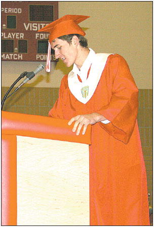 “I don’t know what to do with you, but I wouldn’t know what to do without you,” said co-valedictorian Hailey Denae Turner, speaking to many of her fellow students and the audience. She let out a raucous “yee haw” in memory of Statton at the end of her speech, one that reflected on high school being a place where “we mess up” but learn from our mistakes. Co-valedictorian Matt Guio pontificated about how graduation was much like the first time he climbed up the high dive. “The only difference this time is that we’re about to launch into the real world,” Guio said.