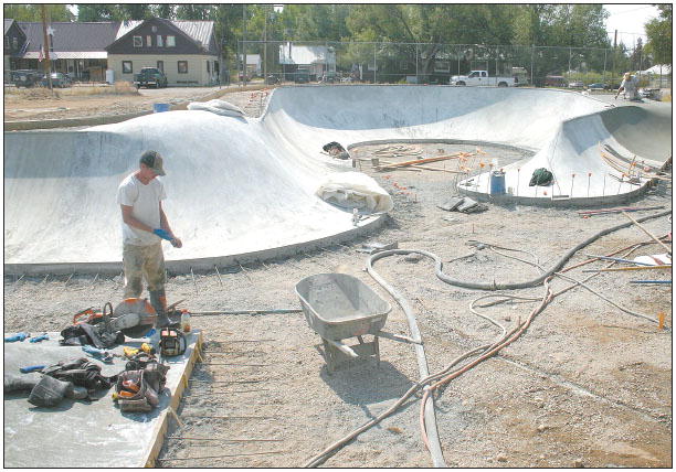 by Stephen Crane The form of the flow bowl at the new skatepark begins to take shape as more cement is added every day. The new complex in Pinedale, which will include a basketball court, volleyball court and ice-skating rink, is scheduled for completion before winter. Check out the story and photo on the cast of colorful characters that is building the skatepark on page 3A. Photo credits: Stephen Crane See The Archives for past articles. Copyright © 2008 Pinedale Roundup All rights reserved. Reproduction by any means must have permission of the Publisher. Pinedale Roundup, PO Box 100, Pinedale, WY 82941 Phone 307-367-2123 editor@pinedaleroundup.com |